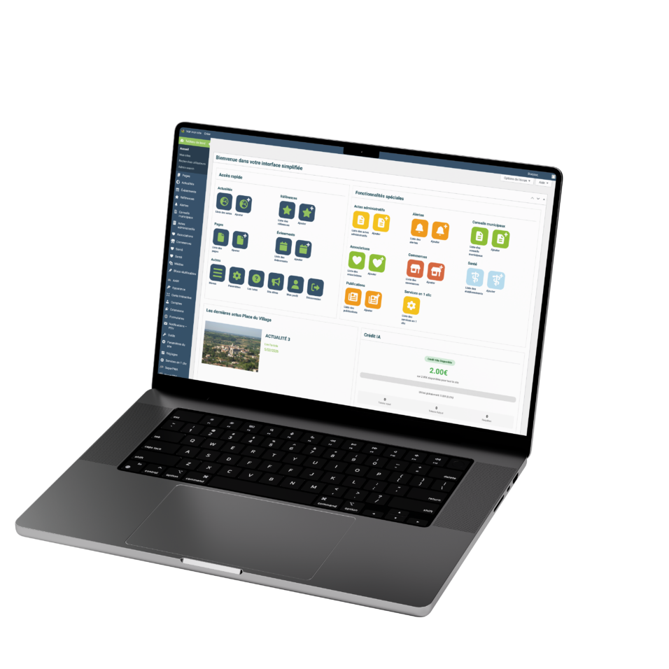 L’affichage légal dématérialisé est intégré à la solution et permet de publier arrêtés, délibérations et informations réglementaires depuis le même tableau de bord que le site internet de la commune.